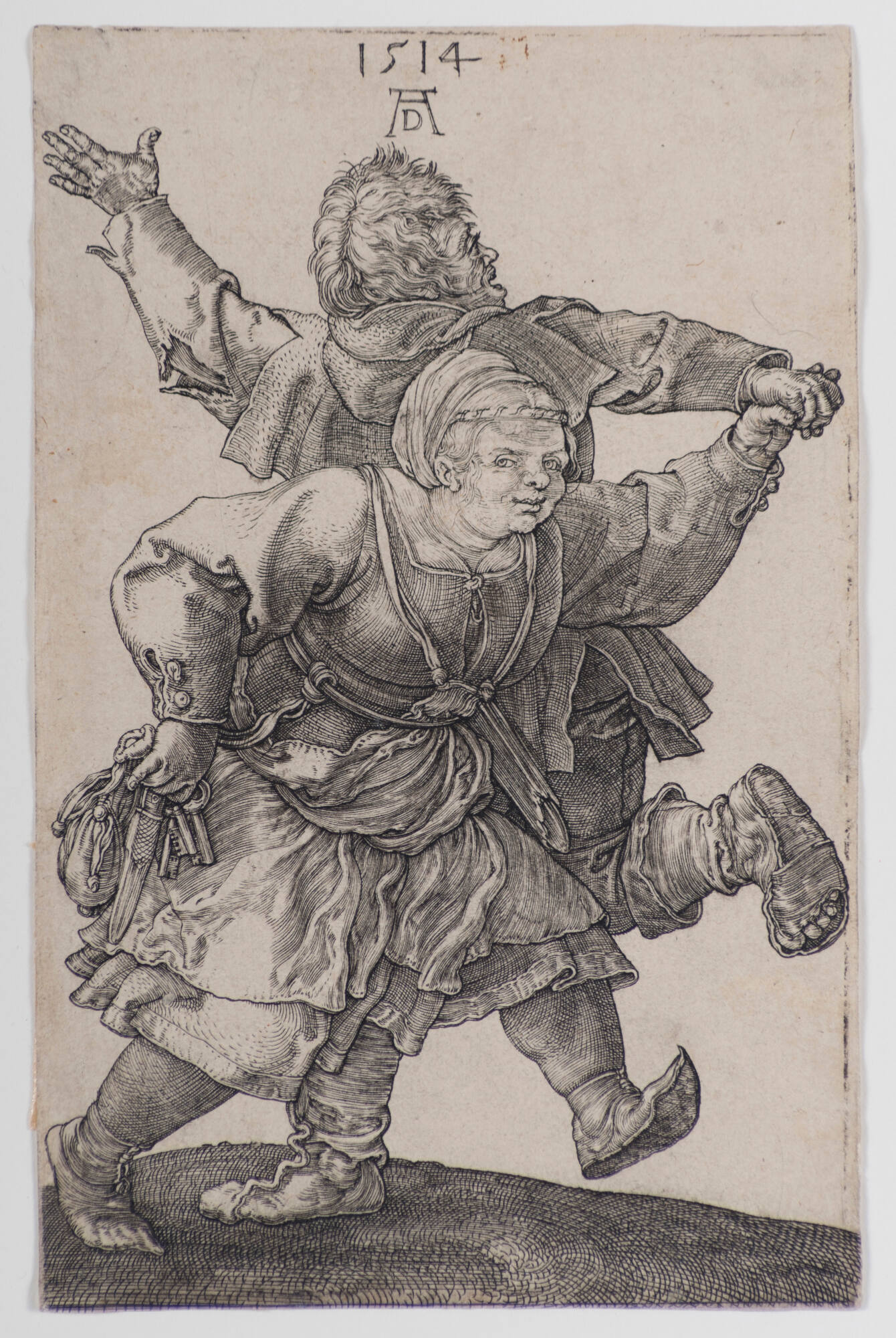 Dancing Peasants dates from 1514, the same year as his most accomplished engravings. In the late 1490s, Durer explored the theme of peasant life, a theme to which he returned. Monumentally plump dancing figures fill the composition. They form a whirling configuration that suggests the motion of the dance.