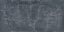 The chaos of science. The eloquence of learning sophisticated patterns. Order out of chaos. Simple lines, scribbles, mistakes, this is what your life is like. Salvation in an eraser. Another formula, another day. There’s a continuous stream there, but you only know that once you’re in it. One chalkboard, many souls.