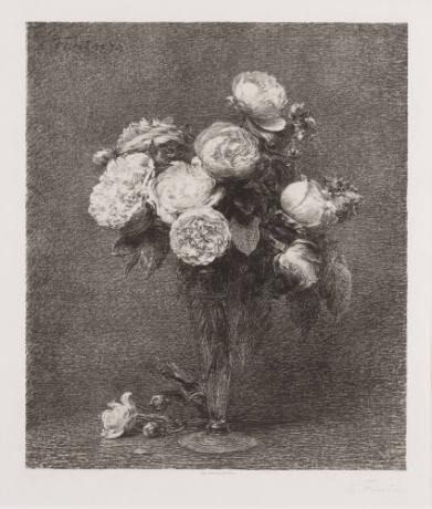 Fantin-Latour is best known for his realistic paintings of fruit and flowers; however, only one of his prints depicts flowers. The rest of his print oeuvre, consisting of approximately 200 works, primarily is concerned with illustrations for musical compositions by Wagner, Berlioz, Schumann and other composers. These were favorite themes in his paintings as well.