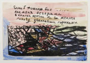 Born in 1886, Rozanova studied at the Bolshakov School of Art and the Stoganov School of Applied Art, Moscow, 1904 to 1910. This print is from a set of 23 lithographs with watercolor and is a collaboration with the avant-garde poet Alexei Kruchenykh, whom she later married.