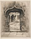 In Porte d’entrée, Cluny, Paris, 1911, a flamboyantly arched doorway opens on to the courtyard of the Parisian residence of the abbots of the Benedictine abbey of Cluny in Burgundy, a monastery in eastern France. During the Middle Ages, the abbey of Cluny was the richest and most powerful of French monastic establishments. The Cluny palace in Paris is one of the most important surviving residences of Gothic architecture.