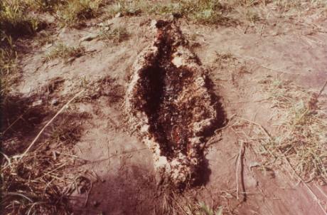 Label TextAt a young age, Ana Mendieta was taken from her native Cuba to orphanages and foster homes in Iowa City in an attempt to escape political turmoil. She used the “Silueta” series to reconnect with nature and the earth she felt violently torn from. In nearly 200 earth/body works, she carved, submerged, or burnt herself into the ground, documenting the acts with photography. In these images, Mendieta traced her silhouette, filled the outline with gunpowder, and then ignited it, capturing both the flames and their aftermath on film.