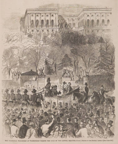 InscriptionsTHE INAUGURAL PROCESSION AT WASHINGTON PASSING THE GATE OF THE CAPITOL GROUNDS.- FROM A SKETCH BY OUR SPECIAL ARTIST.- [SEE PAGE 165.] (l,c plate)