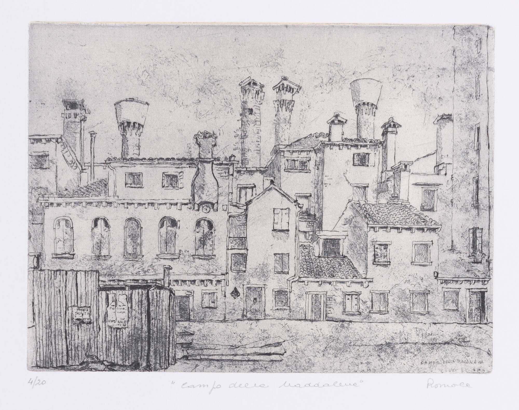 InscriptionsCampo della Maddalena (l,r etched in plate); 4/20 (l,l graphite); "Campo della Maddalena" (l,c graphite)