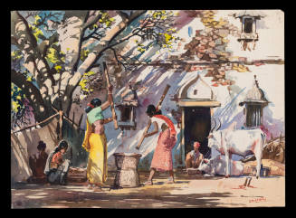 G. D. ThyagaRaj, sometimes given as G. D. Thyaga Raj. His initials are often confused as M.D. or A. D Thyagaraj. He was the youngest of three brothers who are all well known Indian painters. Born in 1930 in Kodiakanal, India. His brother Arul Raj wrote a well known book on painting techniques. Their family home was in Kodaikanal in Southern India. All three brothers studied at the Madras College of Arts. - http://www.rubylane.com/item/187590-THY04212011/Portrait-Man-Indian-Artist-G-D
