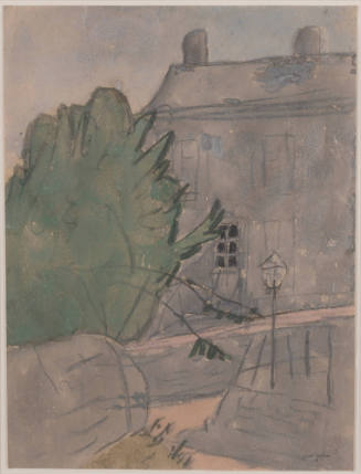 Inscriptionsverso: landscape sketch in pencil with numbers interspersed. Notations not in Gwen John's handwriting: EJ 821 9(l/l), 12 1/2 al(?) 1/2 (l/r)
