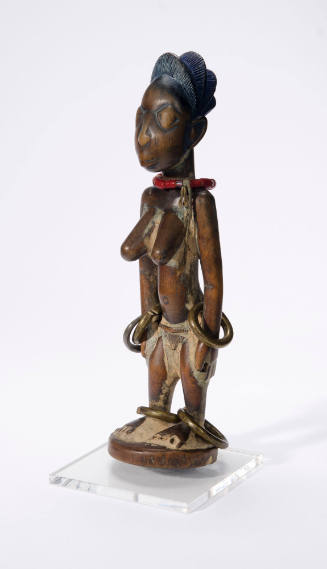This beautifully carved Ibeji figure was created at the death of a twin. The Yoruba believed that twins bring good luck to their families, and if a twin dies, a wooden figure is carved to represent the deceased. The carved figure is then fed and cared for as if it were a living child.
