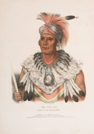Charles Bird King and other artists painted portraits of Indian leaders who came in delegation to Washington. Thomas McKenney, superintendant of Indian trade, together with James Hall, published the three-volume History of the Tribes of North America, containing these hand-colored lithographic portraits.