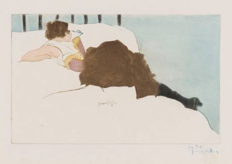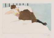 "Sulking Woman", 1900, is one of Villon's earliest aquatints and is characteristic of the style prevalent in Paris at the turn of the century. It reflects Villon's contact with the works of Toulouse-Lautrec and Pierre Bonnard.