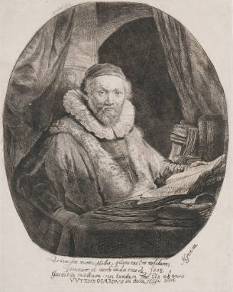 InscriptionsFour latin verses and name of H. Grotins in plate below subject