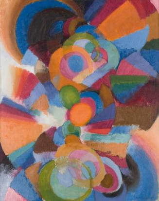 Label TextWhen [abstract art] began in 1910 it was the radical innovation of a few artists, in an era of dazzling creativity in art. Stanton Macdonald-Wright was one of the few Americans to be among the avant-garde in the epoch making period before the first World War. His brilliant orchestrations of color used carefully organized, dynamic compositions based on the circle, and on radiating color wedges. In close relation to the work of Delauney these early painings by Macdonald-Wright were among the first vital abstract works using controlled simultaneous contrast of color, based on the newly developed color theories. Source: Bulletin, May 1963.