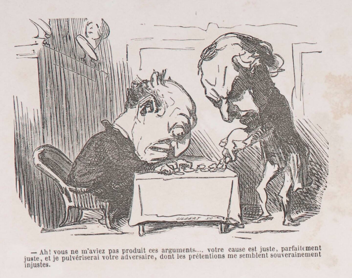 Inscriptions-Ah! vous ne m'aviez pas produit ces arguments.... votre cause est juste, parfailement juste, et je pulvériserai votre adversaire, dont le prétentions me semblent souverainement injustes. (l,c plate)