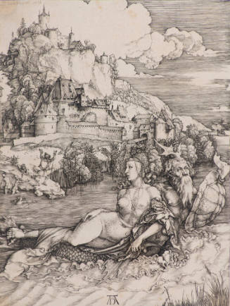 Born in Nurnberg in northern Bavaria in 1471, he learned the art of engraving on metal from his father who was a goldsmith. At the age of fifteen he was apprenticed to the painter Michael Wolgemut for a five-year period. Travel through central Europe with visits to Colmar, Basel, Strasbourg and then south to Venice provided the young artist further experience. In the mid-1490s he returned to his native city. It was there that The Sea Monster and his other important works were created.