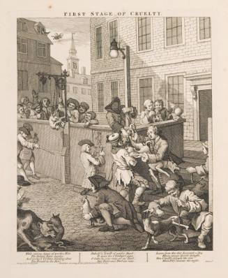 InscriptionsFirst Stage of Cruelty (u,c plate); Designed by W. Hogarth (l,l plate);