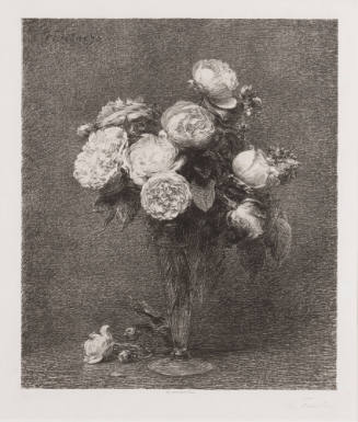 The artist's biographer writes that Bouquet of Roses "was drawn direct from a painted sketch" but the lithograph itself is quite full and complete with a rich range of tones which almost suggest color.