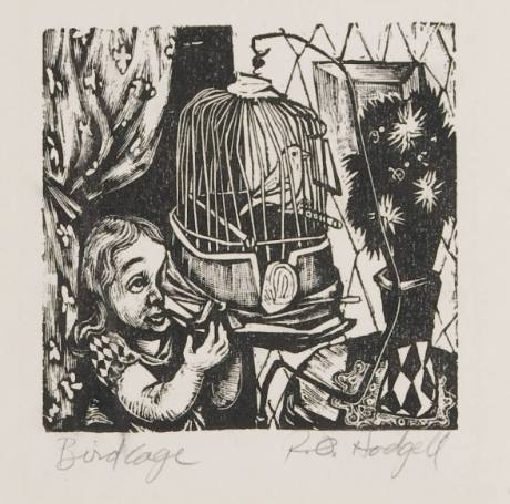 Signed R.O. Hodgell (L/R, pencil) titled Birdcage (L/L, pencil)