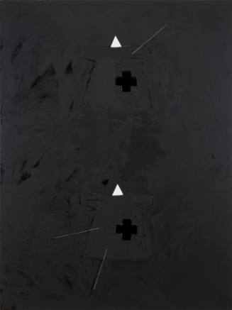Label TextRobert Nunnelley, a younger New York painter, combines the tradition of action painting with a suggestive dramatic content, in terms of abstract form relationships. Source: Bulletin, September 1964.