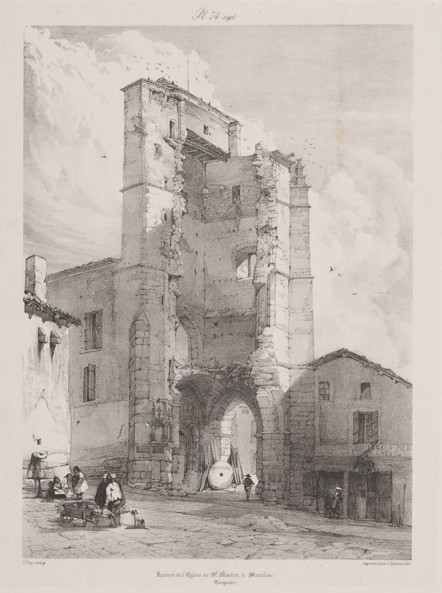 InscriptionsT. Boys lithog (l,l); "mprimé par C. Hullmandel (l,r); Ruines de l'Eglise de St. Martin~ à Souillac. Languedoc; P. 74 sept (u,c); 250 (l,r graphite); 1th (l,r graphite)