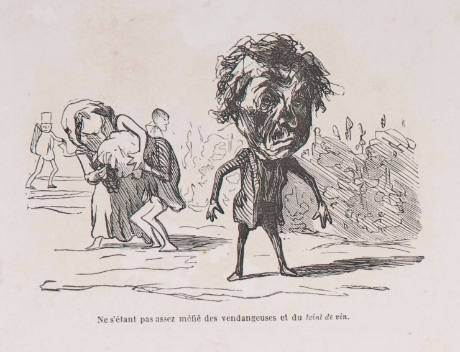 InscriptionsNe s'étant pas assez mèhé des vendangeuses et du tient de vin.(l,c plate)