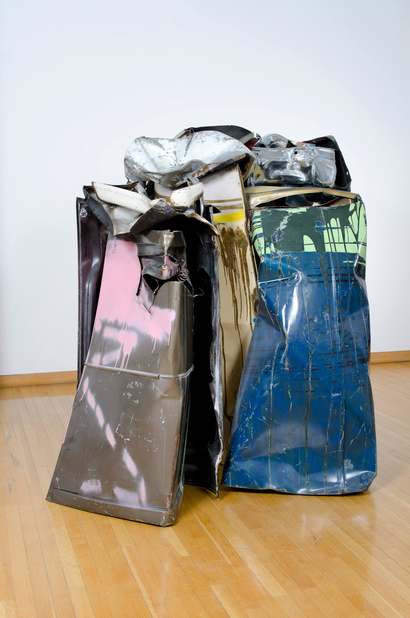 Although he has explored different materials in sculpture, Chamberlain’s automobile-derived sculptures remain his signature works. The car is seen by many as the epitome of American pop culture, and by appropriating it as both subject and medium, Chamberlain aligns himself with Pop Art. Like other Pop artists such as Andy Warhol and James Rosenquist, Chamberlain is interested in blurring the boundaries between art and life. Crushed, wrecked, or discarded cars are familiar to us as urban refuse, but even welded and reformed, these materials are surprising to see in a museum setting.