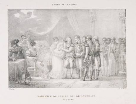 typogprahy: L'ESPOIR DE LA FRANCE (u/c, above subject); NAISSANCE DE S.A.R. LE DUC DE BORDEAUX | le 29 7bre 1820 (l/c, below subject)