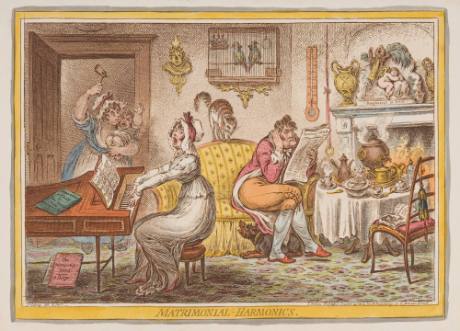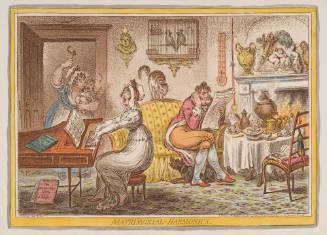 InscriptionsJs. Gillray des. & Fect. (l,l plate); London. Published October 25th, 1805 by H. Humphrey 27 St. James Street (l,r); Matrimonial Harmonics (l/c below subject)