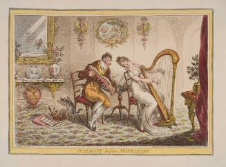 InscriptionsJs. Gillray, des. & ft. (l,r plate); London. Published October 25th 1805. by H. HUmphrey. 27 St. James Street (l,l); Harmony before Matrimony (l,c below image); 538-9 (u,c graphite; Page 325 (l,r)
