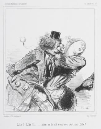 InscriptionsLillie! Lillie!! ... ... rien ne te dit donc que c'est moi, Lillie? (l,c plate); 46-58 (l,r reversed); OEUVRES NOUVELLES DE GAVARNI.i (u,l); LE CARNEVAL. 10. (u,r); Chez Aubert & Cie Pl. de La Bourse, 29 (l,l); Imp. d'Aubert et & Cie (l,r); I | ERô (l,l); 1.— (l,r)