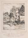 Inscriptions4.(u,r); G. Lith de Gihaut freres | Boulevard des Italiens No. 5 (l,c); LE DEPART DU CONSCRIT. | Allons donc Madeleine… faut s'faire une raison… ah ben ma foi | t'est encore bon enfant, si tu crois que le gouvernement va vous faire Caporal | en restant a garder vos vaches… dans ses foyers paternel… | d'ailleurs ça y est défendu par les autorités.(l,c)