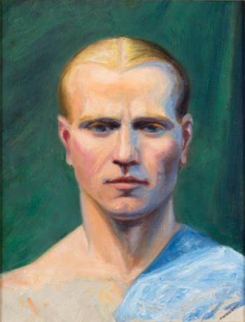 At the time of this portrait Nels Joseph Lee was a physical education instructor at McKinley High School in Cedar Rapids. (Wood also taught in the Cedar Rapids schools from 1919 to 1925 and it was during this time that he met Mr. Lee)
