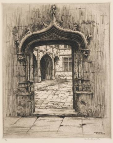 Born in Brampton, Ontario, Caroline Helena Armington first studied art in Toronto. In 1900, she went to Paris to study at the Académie Julian, a private art school that was popular with foreign artists and that accepted women. In 1905, she and her husband, the painter Frank Armington, settled permanently in Paris. A gifted observer and productive printmaker, Caroline Armington achieved commercial success, creating over 500 etchings of Gothic churches, picturesque medieval streets, bridges, and other European architectural monuments.