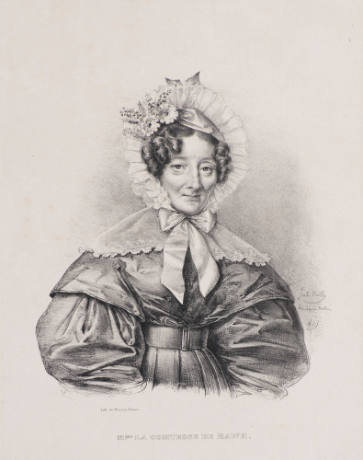 InscriptionsJul. Boilly des deprès Natur 1835 (l,r stone); Lith de Thierry Frères (l,r); Mme. LA COMTESSE DE BAWR (l,c); (coury de champgrand.) 1776-1861 (l,c);