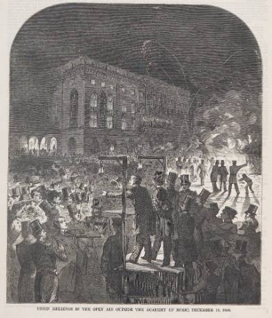 InscriptionsUNION MEETINGS IN THE OPEN AIR OUTSIDE THE ACADEMY OF MUSIC, DECEMBER 19, 1859 (l,c plate)