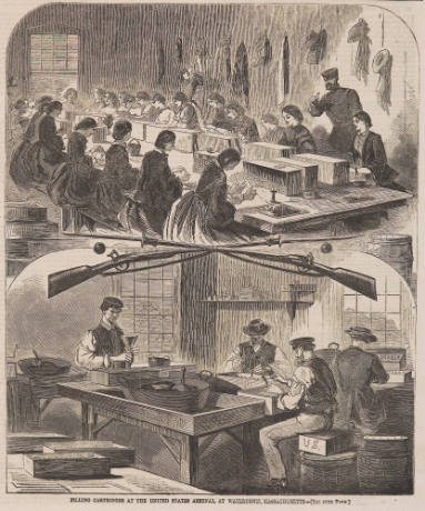 InscriptionsFILLING CARTRIDGES AT THE UNITED STATES ARSENAL, AT WATERTOWN, MASSACHUSETTS.- SEE NEXT PAGE.] (l,c plate)