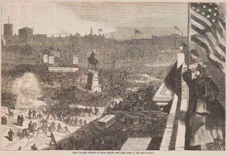 InscriptionsGREAT SUMTER MEETING IN UNION SQUARE, NEW YORK, APRIL 11, 1863. -[SEE PAGE 270.] (l,c plate)