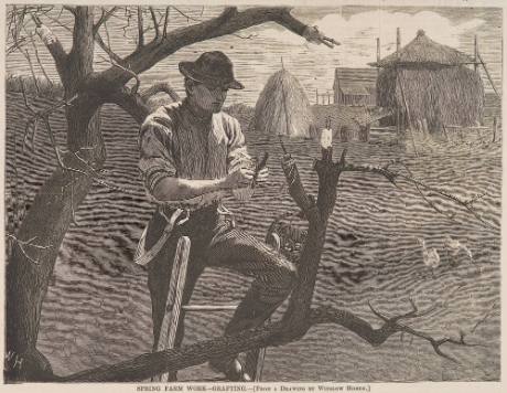 InscriptionsSPRING FARM WORK - GRAFTING.- [FROM A DRAWING BY WINSLOW HOMER.] (l,c plate)