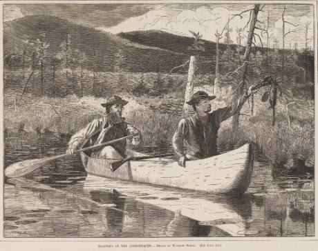 InscriptionsTRAPPING IN THE ADIRONDACKS. - DRAWN BY WINSLOW HOMER. (SEE PAGE 838.) (l,c plate)
