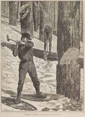 InscriptionsLUNBERING IN WINTER. - DRAWN BY WINSLOW HOMER. (SEE PAGE 78.) (l,c plate)