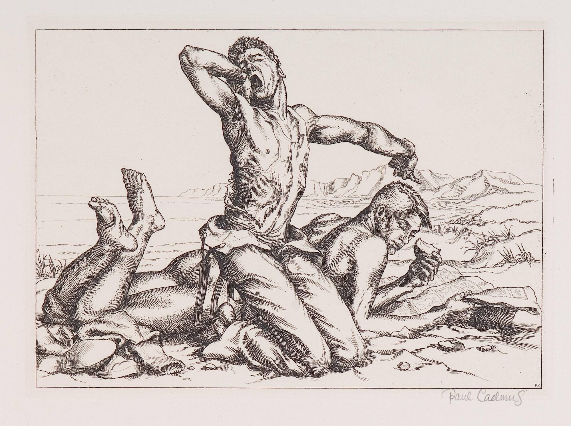 Paul Cadmus burst on the national art scene in the 1930s with dynamic paintings and etchings that provoked outrage for their social, political and erotic content. Drawn and etched with an old master command of line and form, Cadmus' Two Boys on a Beach No. 1 (1938) depicts two young men, one holding a symbolic apple of temptation.