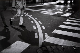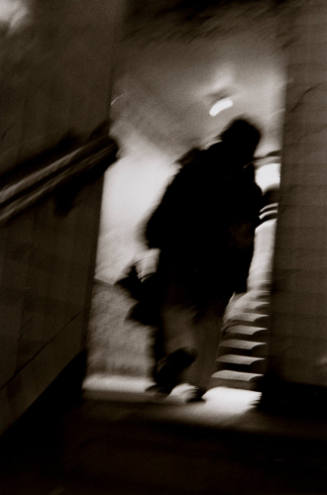man in black coat and women with umbrellas, from "Times Square Night Series"