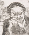 This work is the only etching that Vincent van Gogh ever made , Van Gogh created the etching when he was at the height of his artictic powers and fullness of emotional expression. The etching conveys all the intensity of van Gogh's art. He drew the doctor's face as if pressed up close to the picture plane. the surging, squirming lines and contours generate a pulsing energy. By expressively distorting naturalistic form, van Gogh achieved a powerful psychological effect. As in his paintings, the viewer not only sees--but also feels--the power of this etching.