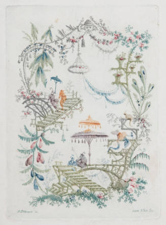 Anne Allen is a somewhat mysterious figure in art history. Her birth and death dates are unknown. She was born in England and was actice as a printmaker in Paris around 1790-1800. Known for 47 remarkable color etchings of chinoiserie and floral subjects, she made etchings after the designs of Jean-Baptiste Pillemont, a leading artist and arbiter of taste during the 18th century in France. Allen's unusual method of color printing, in which two or more colored inks are selectively applied to different parts of two etched copperplates, is known as a la poupee. The delicacy and brilliance of her etchings gives them an appearance unlike any other color prints. Seldom found on the print market, Allen's etchings are rarities. Her imagery and way of drawing and etching anticipate 20th- and 21st-century artists ranging from the Dadaists and Surrealists to Dr. Seuss and Tom Friedman.