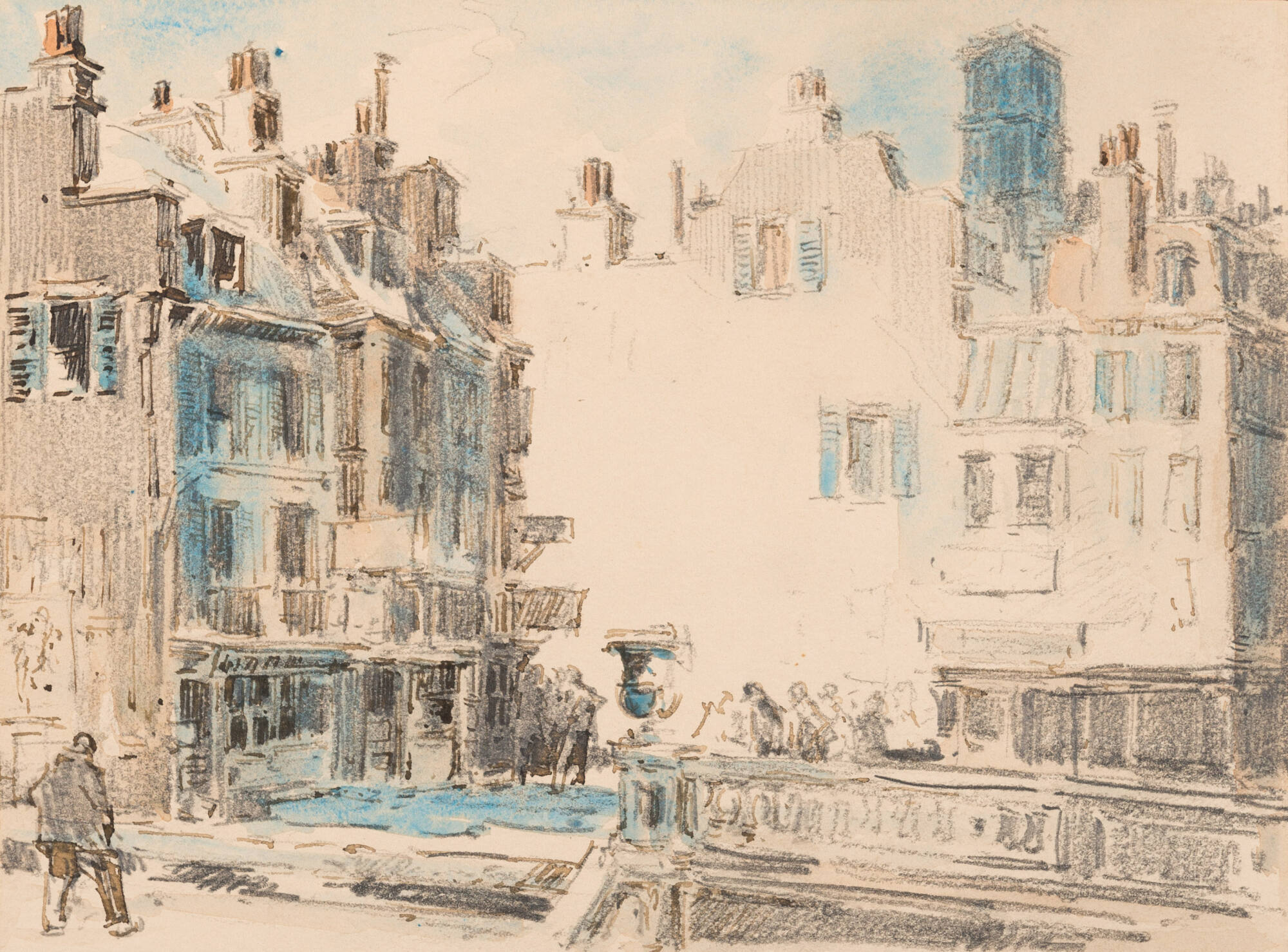 Inscriptions"To Mrs. Alston Gerry 'A Little Bit of Old Paris' Merry Xmas 1912 Everett Shinn" (l,c graphite)