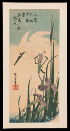 Catalogue raisonnéChiba Mus., Ukiyo-e bi no kiwami (Baur coll. exh. cat., 2001), #197; Ôta kinen bijutsukan, Hiroshige kachôga ten (1997), #s 7-8; RISD, Yomigaeru bi (1990), #s 79, 257; Ukiyo-e shûka 14 (1981), Hiroshige list, p. 241, ôtanzaku #7.4