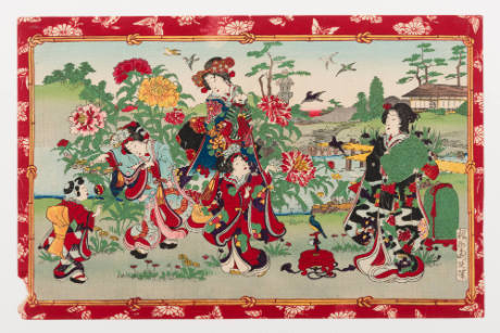Women and children playing with a Termari Ball in a Peony Garden, ca. 1880-1890