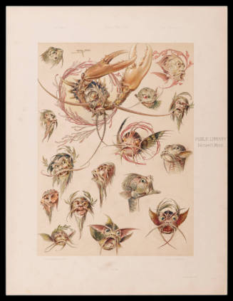 Label TextAnton Johann Nepomuk Seder (German, 1850–1916) was trained in Munich. He was a painter who served as director of the School for Applied Art and Design in Strasburg, Germany. Stylistically, his art comes out of the Jugendstil (Art Nouveau) movement. His many designs for the decorative arts were published in portfolios of color lithographs. This color print of fish by Seder is plate number 10 from his most famous portfolio, “Das Thier in der Decorativen Kunst” (The Animal in Decorative Art), printed in Vienna in 1896. The donor, Charles M. Young, is a private print dealer based in Portland, Connecticut. These are the first works from the Jugendstil movement to enter the permanent collections.