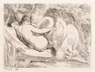 Leda and the swan, reclining to left under a spreading tree in rushes at the edge of a river, 1792