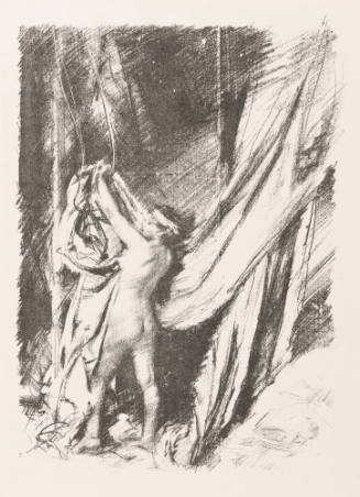 British painter Charles Sims was a member of the Royal Academy of Arts. His lithograph of a nude female figure amidst drapery refers to the story of Noah following the flood in Genesis 9:27: "God shall enlarge Japeth, and he shall dwell in the tents of Shem; and Canaan shall be his servant."
