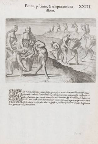 CERTO etiam tempore, omnis ferinæ genus, pisces, atque etiam crocodilos coacervant singulus annis: corbibus deinde impositos, hermophroditorum satis promissos, crifposque capillos gestantium, quorum ante memini, humeris imponunt, & in horreum jam dictum inferant: hanc autem annonam non nisi extrema neceBitate attingunt: atque tum ut omnis diBidÿ tollatur occasio, alter alteri id significat, adeó pacificè inter se vivunt. Regitamen licet, quantum volet, inde auferre. (l,c print)